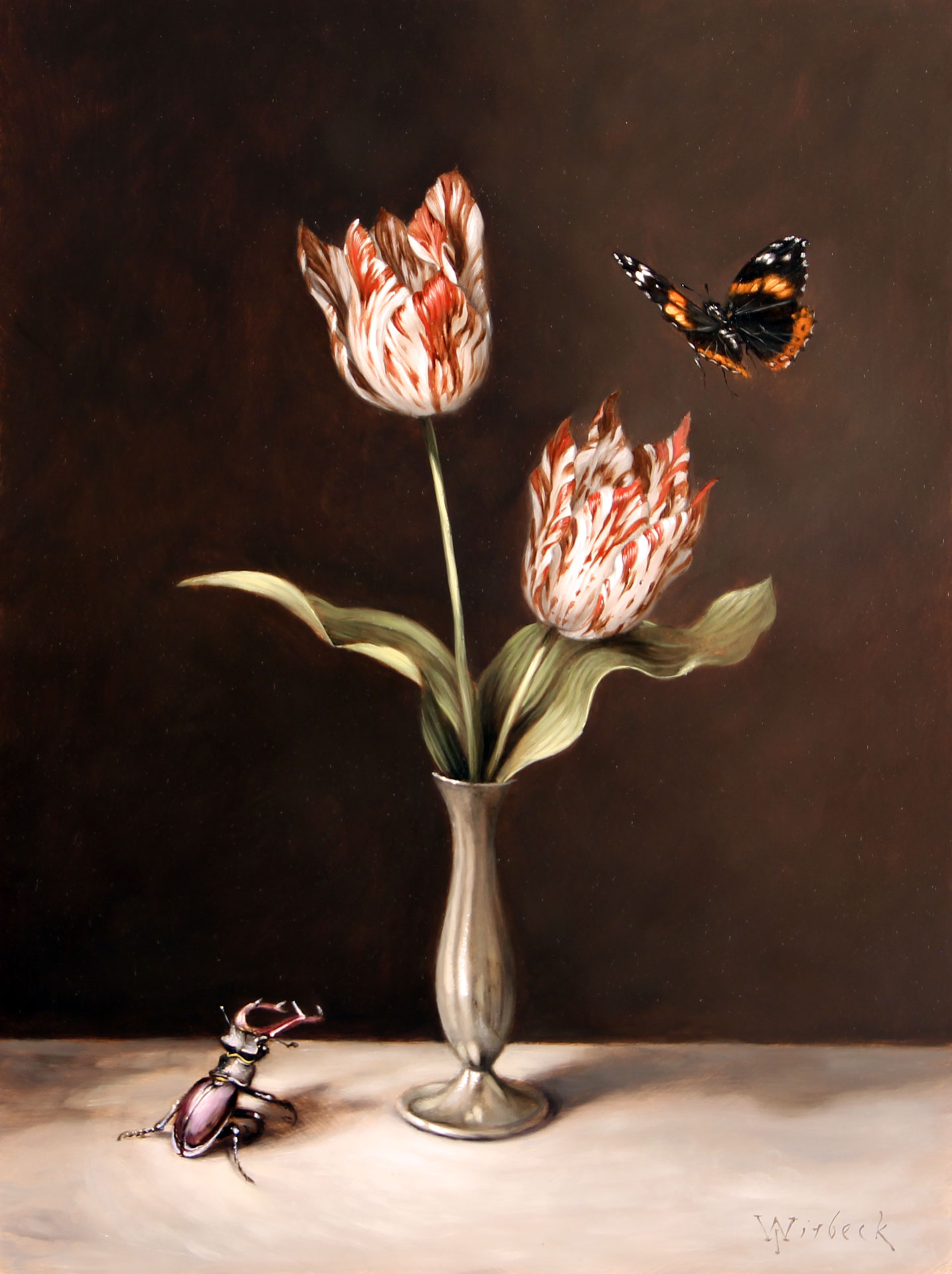 Stag Beetle with Tulips